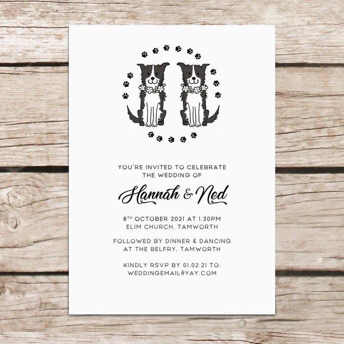 Be the first to review “Dog Wedding Invitations, Personalised Wedding Invites With Envelopes, Luxury Printed Design, Eco Friendly, Illustrated Dogs Cute Invitations”